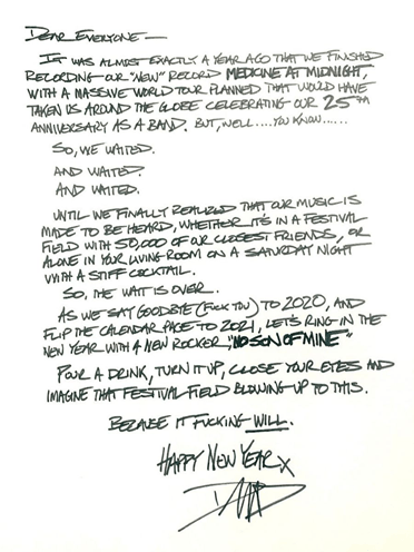 Foo Fighters ya está sonando este 2021 con su nuevo sencillo “No Son of Mine”, disponible ahora en todas las plataformas digitales. Éste es el segundo adelanto de su décimo álbum de estudio Medicine at Midnight, mismoque saldrá el 5 de febrero y ya está disponible en pre-orden.