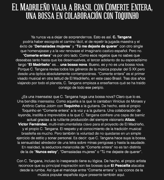 «Comerte Entera» junto a Toquinho lo nuevo de C.Tangana | ¡Ya disponible! Publicado el 15 enero, 2021 por Fernando Avalos Deja un comentario Compártelo: Compartir en X (Se abre en una ventana nueva) X Comparte en Facebook (Se abre en una ventana nueva) Facebook Me gusta Cargando... Estrenos Urbano