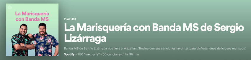 Además Spotify crea un playlist exclusivo mismo que se titula “La Marisquería con Banda MS de Sergio Lizárraga”Descúbrelo AQUÍ