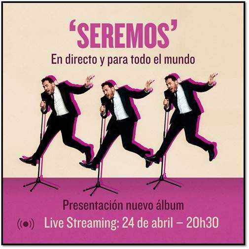 El cantante compartirá algunas de sus nuevas canciones y ofrecerá un concierto en abierto a través de su canal de YouTube el próximo sábado 24 de abril a las 13:30h (hora española).