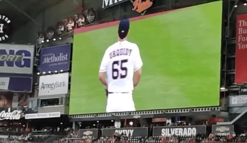 El pitcher José Urquidy, originario de Mazatlán, Sinaloa escucha el éxito “LA CASITA” cuando se encuentra el montículo y se dispone a disparar una bola