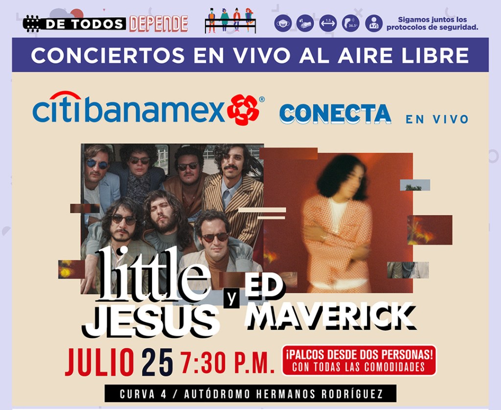 En esta ocasión, la curva 4 del Autódromo Hermanos Rodríguez se llenará de energía a ritmo de uno de los grupos de rock indie más sonados del genero en la actualidad «Little Jesus» y el exponente de folk más relevante en México, «Ed Maverick», este domingo 25 de julio en punto de las 19:30 hrs.