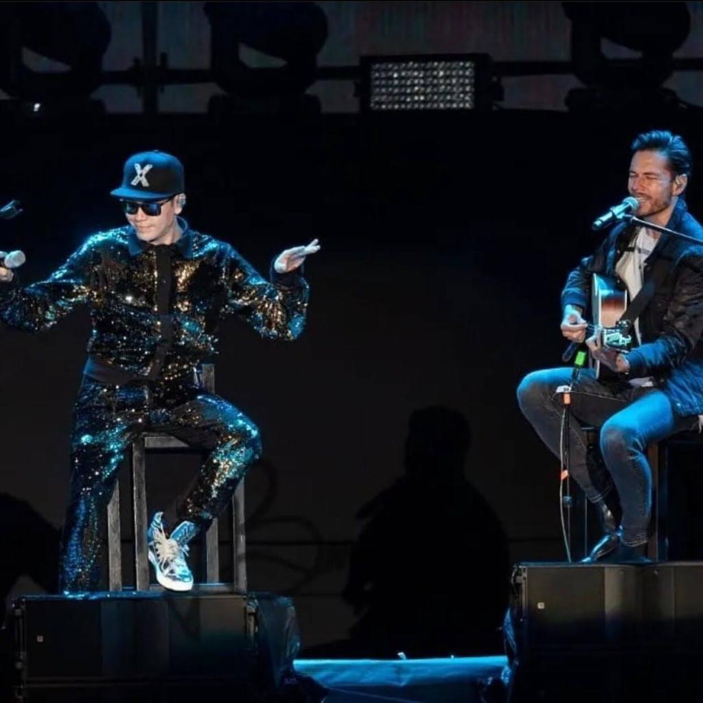 Entre bailarines muy profesionales, cambios de vestuario y una increíble producción, Raymix dio la bienvenida a su segundo invitado e “increíble amigo”, Juan Solo, con quien interpretó su pegajoso y sensual tema “Masoquista”.