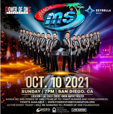 A este respecto, la agrupación sinaloense anuncia que donará la cantidad de 2 dólares por cada boleto vendido para el concierto que se llevará a cabo el próximo 10 de Octubre en el North Island Credit Union Amphitheatreen la ciudad de San Diego, California.