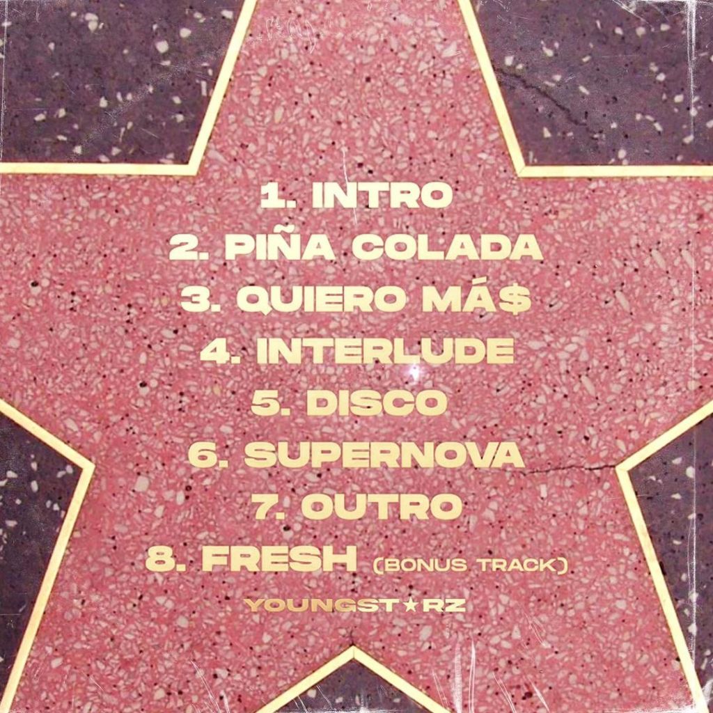 Luego de lograr casi 100mil visitas al video de Piña Colada y superar el medio millón de reproducciones en spotify, con este primer EP, Youngstarz mantienen firme la intención de ser dentro de todas las opciones de escucha que tenemos hoy por hoy, una propuesta alternativa fresca y diferente para bailar y cantar dentro del mismo género urbano, combinando diferentes géneros y flow.