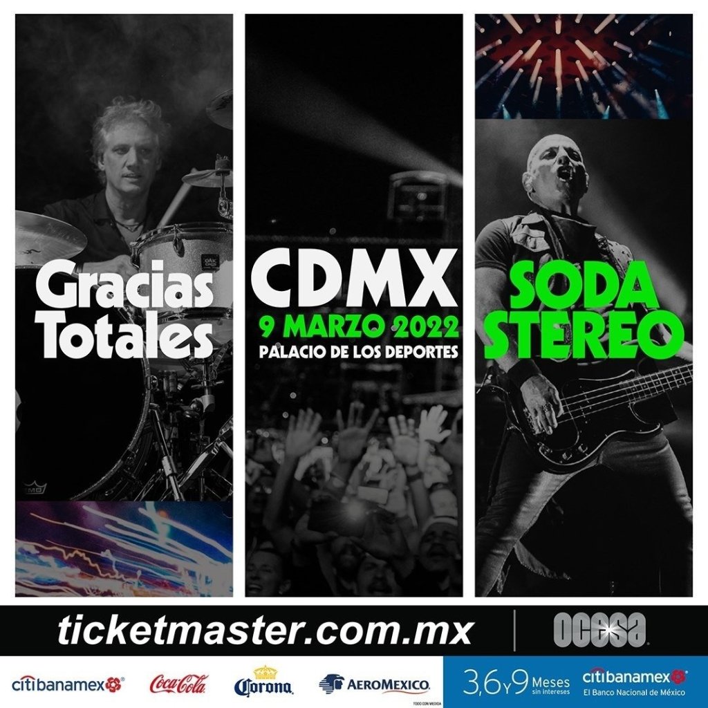 Gracias Totales-Soda Stereo retornará a la Ciudad de México para crear un gran fervor y euforia junto a sus más devotos. Esto sucederá el próximo miércoles 9 de marzo de 2022 en el Palacio de los Deportes. Los boletos se encuentran a la venta a través del Sistema Ticketmaster.
