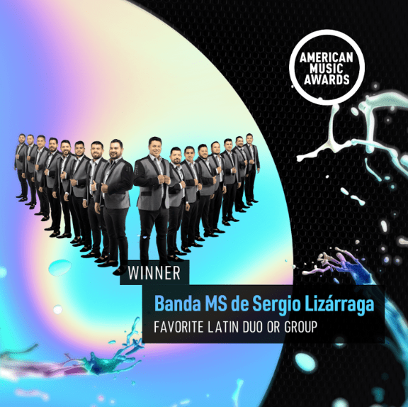 La BANDA MS DE SERGIO LIZÁRRAGA recibe un importante premio, se trata del American Music Award que seleccionó a la agrupación como ganadora indiscutible en la terna denominada “Favorite Latin Duo or Group” (Dúo o grupo Latino Favorito).