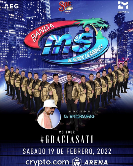 Esta confirmado, la BANDA MS DE SERGIO LIZÁRRAGA regresa Crypto.com Arena (Antes Staples Center) de la cuidad de Los Ángeles con dos importantes presentaciones que se llevaran a cabo los días 18 y 19 de Febrero del 2022 y que una de ellas contará con la actuación especial del rapero Snoop Dogg.