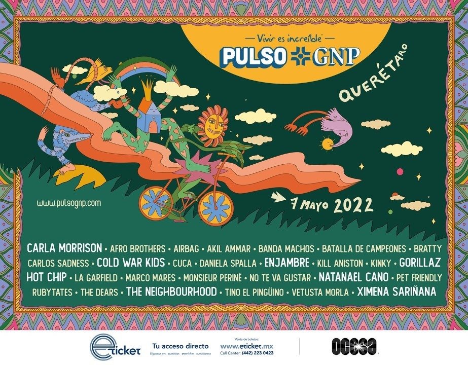 El festival Pulso GNP contará con dos escenarios principales y dos plataformas secundarias, donde se albergará a los 28 proyectosmusicalesque forman parte de esta festividad sonora. Para beneplácito de los miles de queretanos y sus alrededores, las bandas y solistas confirmados para esta nueva fiesta musical son: Afro Brothers, Airbag, Akil Ammar, Banda Machos, Batalla de Campeones, Bratty, Carla Morrison, Carlos Sadness, Cold War Kids, Cuca, Daniela Spalla, Enjambre, Gorillaz, Hot Chip, Kill Aniston, Kinky, La Garfield, Marco Mares, Monsieur Periné, Natanael Cano, No Te Va Gustar, Pet Friendly, Rubytates, The Dears, The Neighbourhood, Tino El Pingüino, Vetusta Morla y Ximena Sariñana.