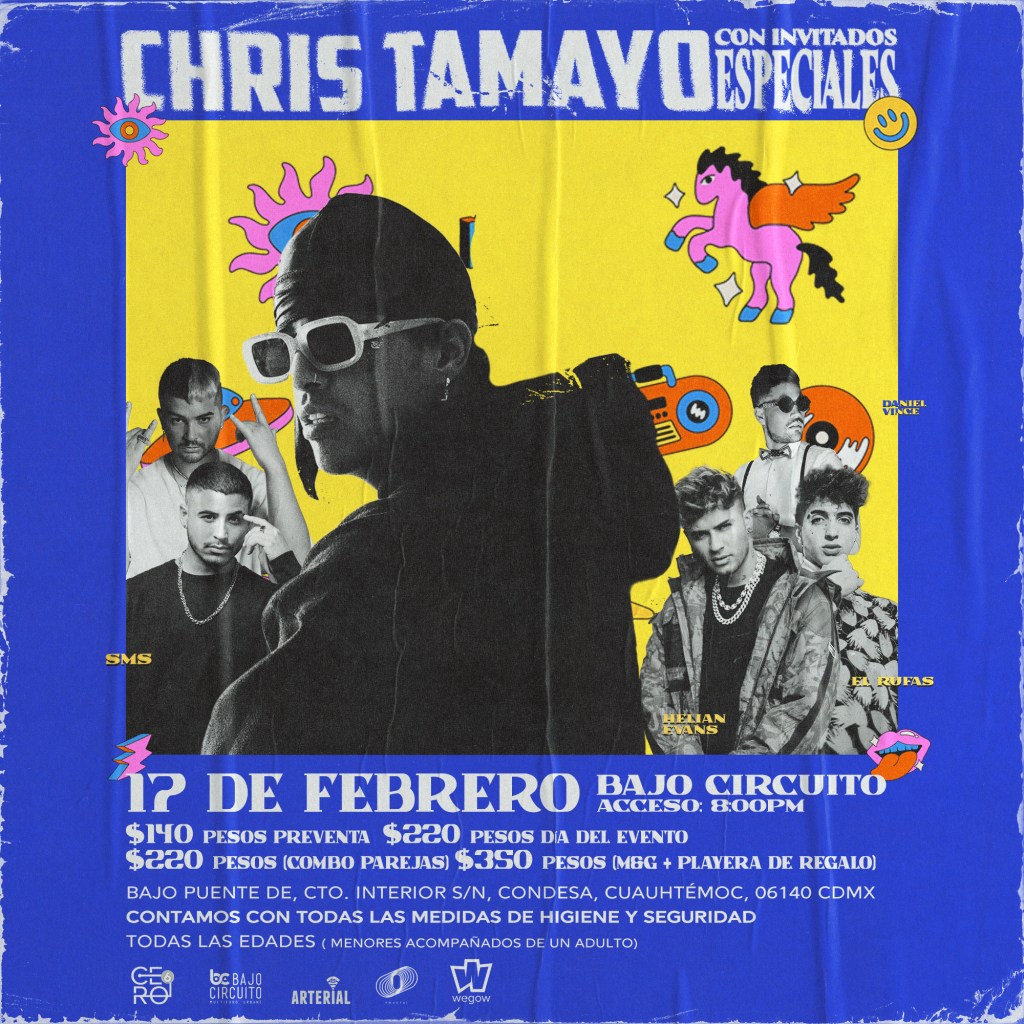 «Hemos montado todo un show con bailarines, pirotecnia y muchas muchas sorpresas que les van a encantar, así que los esperamos el próximo 17 de febrero en Bajo Circuito, ubicado en Circuito Interior S/N, Col. Condesa, Alcaldía Cuauhtémoc. Los boletos ya están a la venta en www.wegow.com/es-mx/conciertos/chris-tamayo-en-bajo