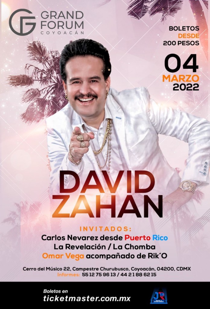 El cantante colombiano David Zahan, está de visita en la CDMX para poner a bailar a los amantes de la salsa, este viernes 4 de marzo en el Grand Fórum Coyoacán.