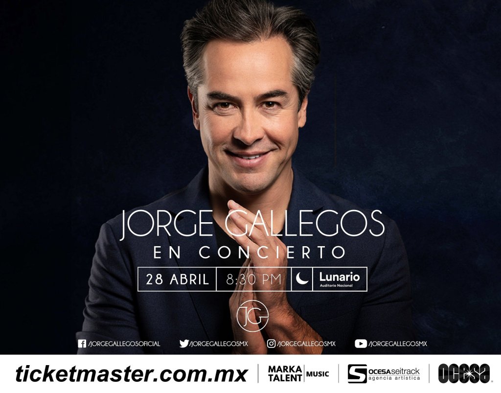 Después del éxito obtenido en el Auditorio Nacional como artista invitado abridor de Río Roma, Jorge Gallegos presentará su nuevo show en el Lunario del Auditorio Nacional el próximo jueves 28 de abril. No te pierdas de una verdadera noche romántica de baladas y descubre una de las nuevas promesas de este género. Los boletos estarán en preventa Citibanamex a partir de 4 y 5 de abril, y un día después los podrás adquirir en las taquillas del inmueble y a través de www.ticktmaster.com.mx