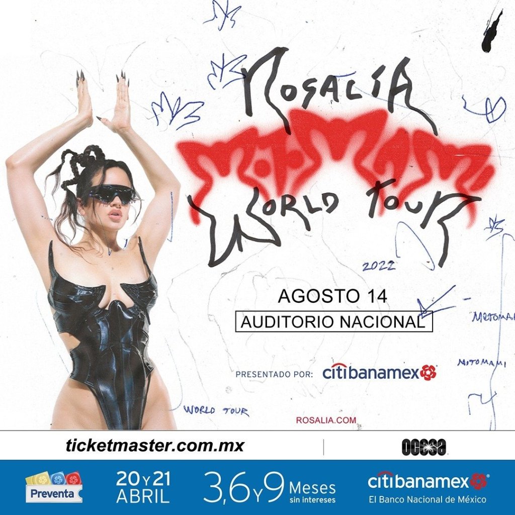 Hoy ROSALÍA , ganadora de ocho premios GRAMMY y de un GRAMMY Latino, ha anunciado su primera gira mundial, MOTOMAMI WORLD TOUR, una gira masiva de 46 conciertos en 15 países este año. Producido por Live Nation, el
