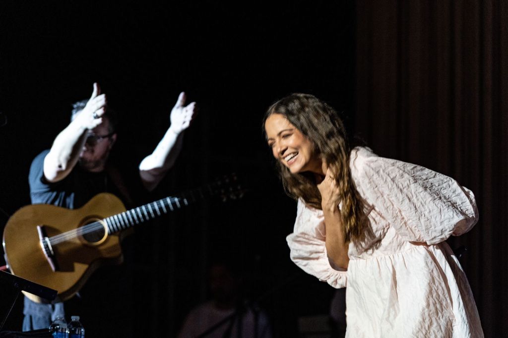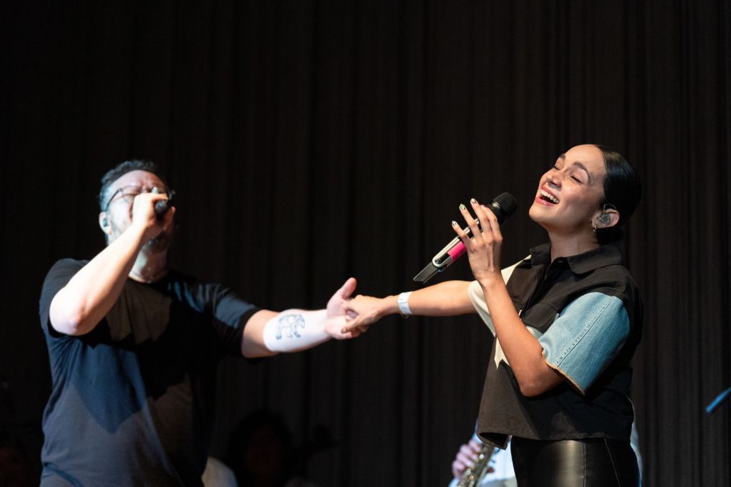 Para cerrar, la sorpresa de la noche llegó al aparecer Natalia Lafourcade, una de sus máximas cómplices en su carrera, con quien hizo el himno “Hasta la raíz”, que cantaron al unísono ante un público gratamente emocionado. La noche que se tornó mágica culminó con “Bailar” y “Para empezar”.