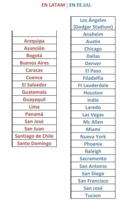 FECHAS DE SU GIRA POR LATAM Y EEUU