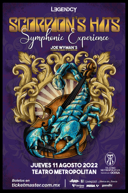 “Joe Wyman’s Scorpion’s Hits Symphonic Experience” harán un show dinámico de dos horas en el que se presentan 15 éxitos de Scorpions en versiones rock, versión sinfónico, versión acústico con 35 músicos en escena de la orquesta sinfónica, a los que se sumarán los artistas invitados generando una experiencia única que podrá disfrutarse este Jueves 11 de Agosto a partir de las ocho y media de la noche en el Teatro Metropólitan. Boletos a la venta en el Sistema Ticketmaster y en taquillas del inmueble.