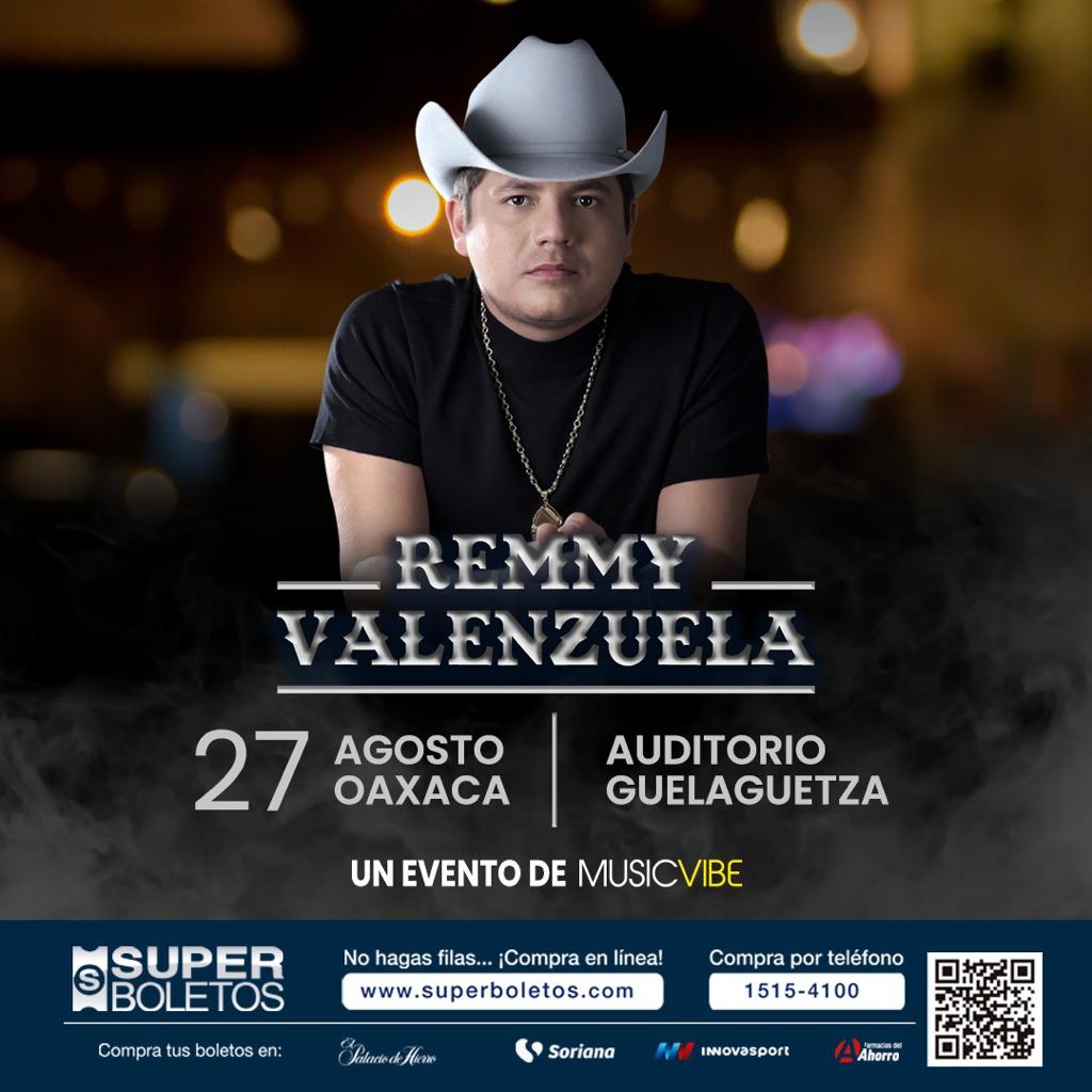 Remmy Valenzuela se presenta el próximo sábado 27 de agosto en el Auditorio Guelaguetza en Oaxaca y el Viernes 09 de septiembre en la Plaza de Toros Cancún. Boletos a la venta a través de las plataformas www.superboletos.com y www.tusboletos.mx respectivamente.