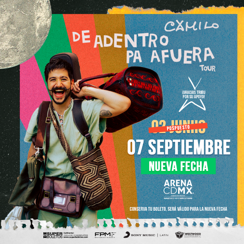 Camilo volverá a México este próximo mes de septiembre. Esto luego de que su tercera fecha tuvo que posponerse. Las primeras dos en Monterrey y en Guadalajara fueron un éxito total. De Adentro Pa Afuera Tour estará llevando a Camilo, literalmente, por todo el mundo..