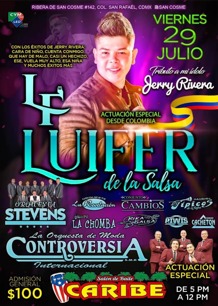 Con un rápido ascenso en el ámbito salsero, a su escasa edad sus canciones ya son un éxito en países como Estados Unidos, México, Argentina, Chile, Venezuela, España y Colombia, en donde se ha dado el lujo de impactar audiencias de inmediato. Luifer dará cátedra de su gran talento con tres únicos conciertos que tiene preparados. Por principio de cuentas se presenta el próximo Viernes 29 de Julio de 2022 en el Salón Caribe ubicado en el Metro San Cosme en CDMX a partir de las 5 de la tarde. Luego y más tarde, arribará al Gran Salón Victoria ubicado en Tlalnepantla, EDOMEX, a partir de las 9 de la noche. Por último, cerrará su breve gira el Sábado 30 de Julio en el Salón Assukar Puebla, en la ciudad de Puebla a partir de las 9 de la noche. Los boletos para todas las fechas están disponibles en taquillas de cada inmueble.