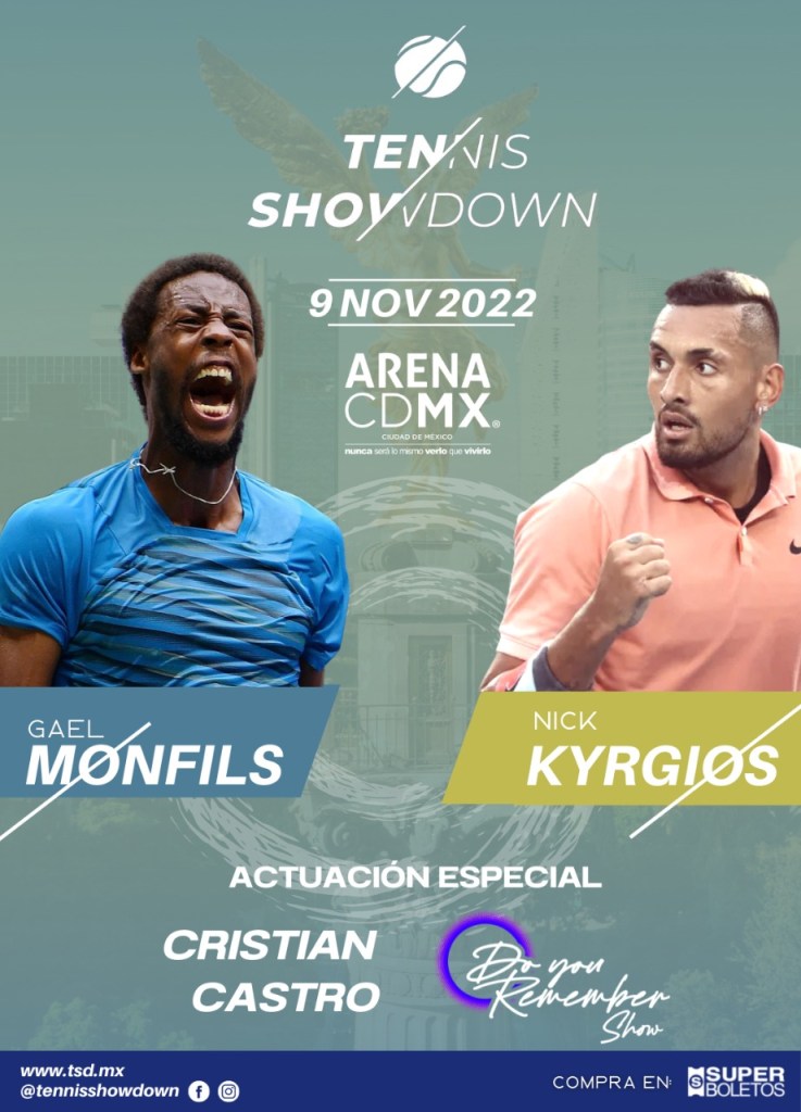 Grata sorpresa ha develado la organización del evento Tennis Showdown México 2022 (#TennisShowdown), que ha confirmado el encuentro de dos de las raquetas más importantes del planeta como es el caso del francés Gaël Monfils y del australiano Nick Kyrgios, que llevan años ocupando las plazas del top 10 y jugando en torneos élite del orbe, en un magno evento que se llevará a cabo el próximo Miércoles 09 de Noviembre en la Arena Ciudad de México, el más moderno y cómodo escenario de la capital de nuestro país. Y como uno de los platos fuertes de esta velada, el espectáculo “Do You Remember Show” plagado por varias estrellas reconocidas que harán un viaje sonoro por los grandes éxitos de los setentas, ochentas, noventas y actuales con grandes artistas, estarán formando parte de dicha velada integrando con ello un concepto que en sí mismo, ya vale la pena el boleto para cualquier concierto. Boletos a la venta en el Sistema Superboletos y en taquillas de la Arena Ciudad de México.