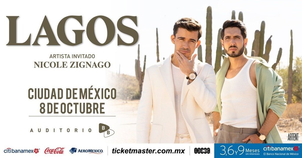 Este 8 de octubre, LAGOS se presentará en el escenario del Auditorio BB en una noche que estará llena de grandes éxitos del dueto. Todavía estás a tiempo de adquirir tus boletos en puntos Ticketmaster y en las taquillas del inmueble, para disfrutar de un gran concierto.