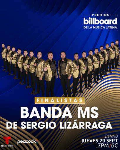 Una vez más el nombre de la BANDA MS DE SERGIO LIZÁRRAGA, aparece en la lista de los finalistas a los Premios Billboard de la Música Latina y con ello, nuevamente, se convierte en el único artista del género que compite en esta importante premiación, un hecho que hay que subrayar ya que es el resultado de un trabajo creativo constante y una actitud siempre positiva misma que los ha llevado a ocupar un lugar privilegiado en el gusto del público.
