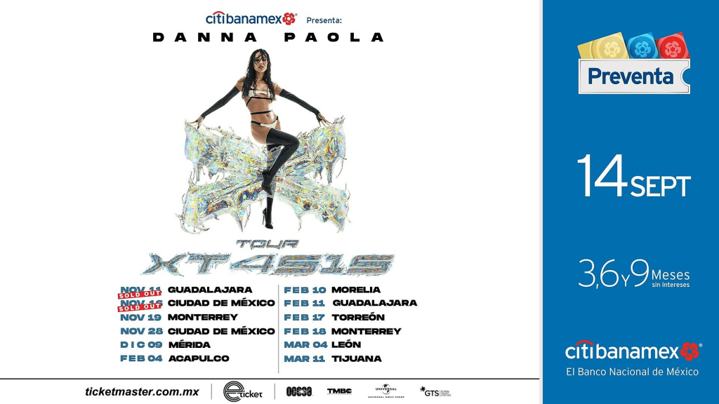 Tras el furor por la noticia de su nuevo sencillo “XT4S1S”, así como el anuncio de su gira internacional, los fans de Danna Paola agotaron en horas los boletos para su primera presentación en el emblemático Auditorio Nacional, a lo que la artista agradeció con un mensaje en sus redes sociales: “No tengo palabras, se los juro. Sold out en preventa, en mi primer Auditorio Nacional, ¿es en serio? […] es una bendición súper grande y se los agradezco muchísimo, les juro que van a vivir el mejor show de su vida”