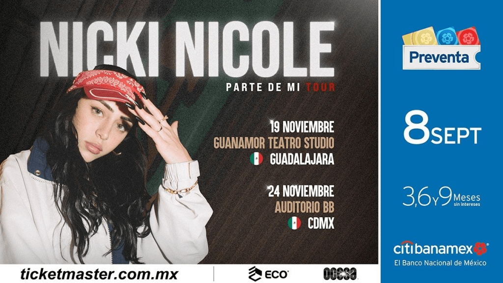 Esta increíble trapera que la está rompiendo durísimo, quiere seguir con la racha y prender a todo su público mexicano con puro buen freestyle. Nicki Nicole dará dos exclusivos conciertos, además de su participación en el máximo festival de música urbana: el primero será en la Perla Tapatía el 19 de noviembre en Guanamor Studio, y de allí viajará a la CDMX para presentarse en el Auditorio BB el jueves 24 de noviembre.