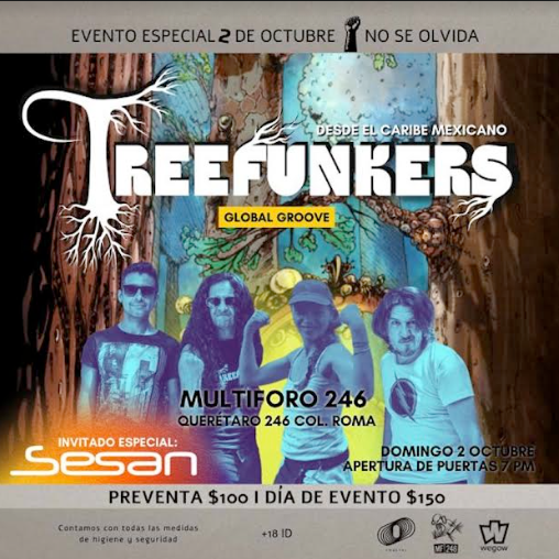 Desde el Caribe Mexicano, TREEFUNKERS llega este 2 de Octubre al Multiforo 246, Col. Roma.
