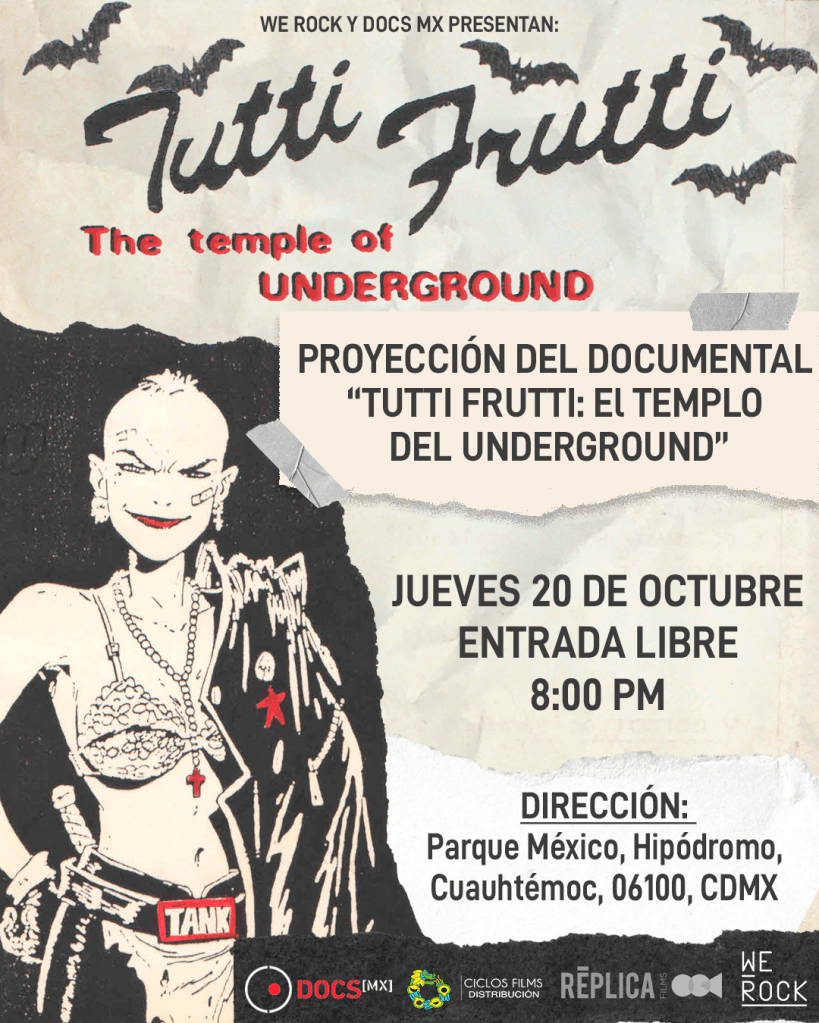 La proyección del documental «Tutti Frutti: El Templo del Underground» llega al Parque México 🔥