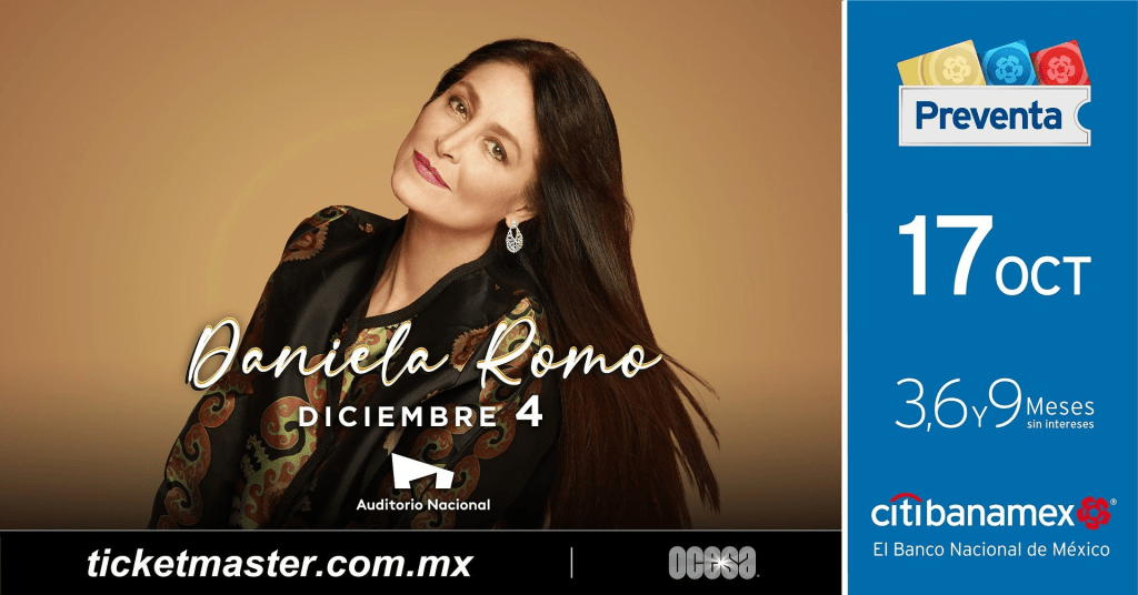 Daniela Romo ofrecerá un segundo concierto en el Coloso de Reforma el 4 de diciembre. Adquiere tus boletos en la venta general a partir del 18 de octubre a través de Ticketmaster y en la taquilla del inmueble.