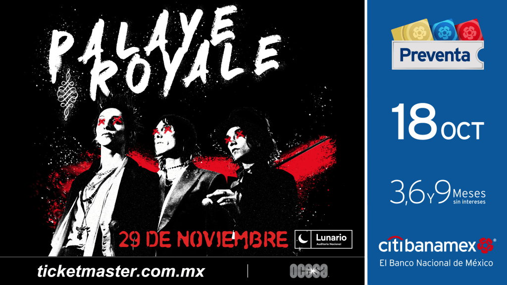 Con una extensa gira en Estados Unidos, Palaye Royale suman otra fecha más y estarán en el Lunario del Auditorio Nacional el 29 de noviembre. Los boletos estarán en preventa Citibanamex el 18 de octubre, y un día después los podrás adquirir en las taquillas del inmueble o a través de www.ticketmaster.com.mx.
