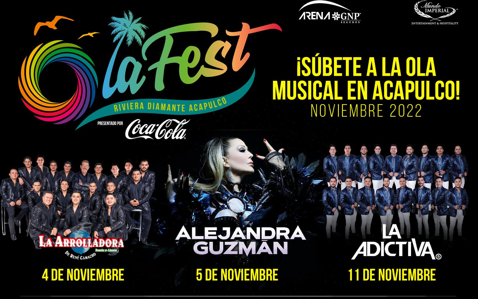 Por supuesto, estamos hablando del “OlaFest Acapulco” presentado por Coca Cola. El primer festival inmersivo con actividades para toda la familia, el cual se llevará a cabo en la espectacular Arena GNP Seguros de Mundo Imperial que tiene capacidad para más de 11,000 espectadores.