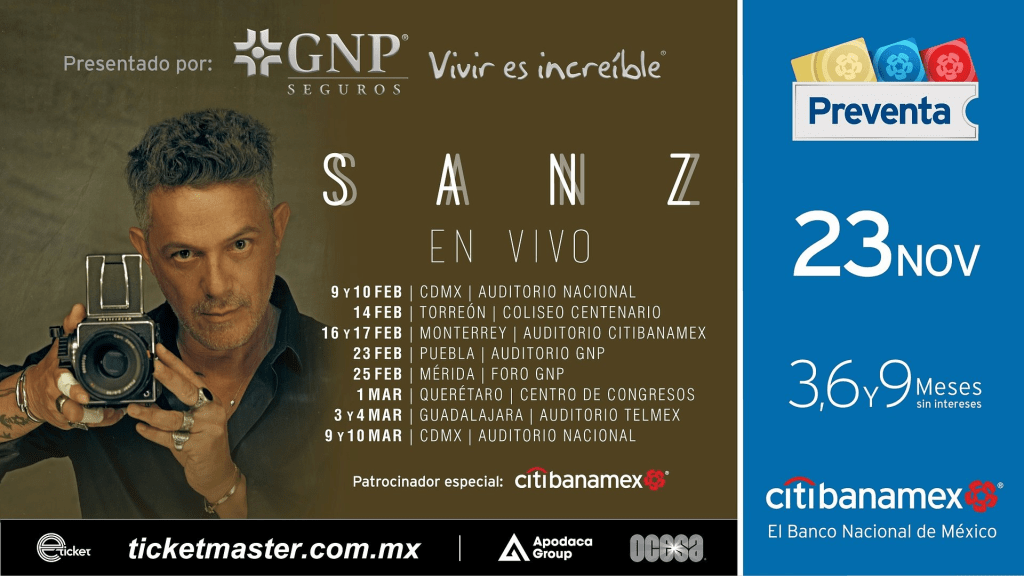 Uno de los artistas más importantes a nivel internacional y el más grande de España, Alejandro Sanz, llega a nuestro país para visitar siete ciudades con 12 espectaculares presentaciones, esto como parte de su nueva gira Sanz en Vivo:
