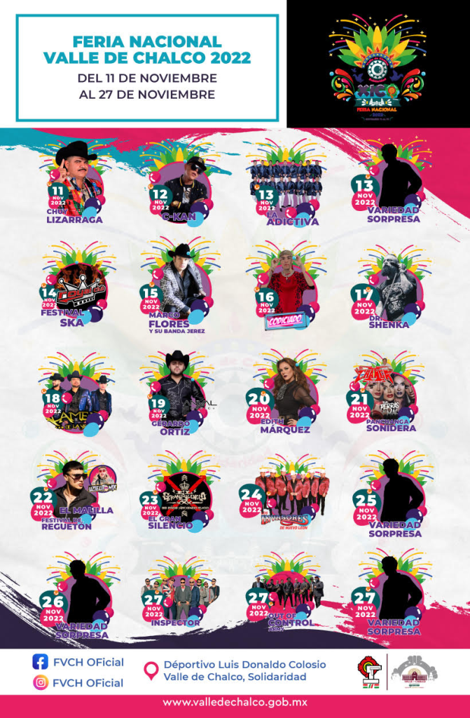 CARTELERA ARTÍSTICA FERIA NACIONAL DE VALLE DE CHALCO 2022