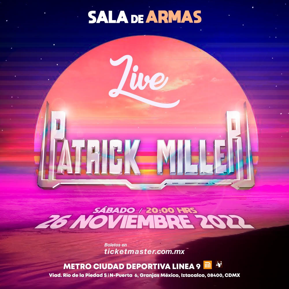 Patrick Miller resonará de nueva cuenta en la Sala de Armas de la Ciudad Deportiva este Sábado 26 de Noviembre de 2022 a partir de las ocho de la noche en el marco de su nuevo espectáculo “Live”. Boletos a la venta en el Sistema Ticketmaster, Fábricas de Francia, Palacio de Hierro, Liverpool, Mixup y en puntos de venta autorizados.