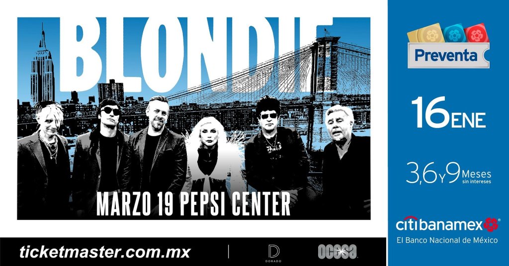 Blondie , la legendaria banda de new wave nominada al GRAMMY® y miembro del Salón de la Fama del Rock & Roll, confirma su regreso a la capital del país con un concierto que obtuvo sus más grandes éxitos, como parte de la gira con la que recorrerán el mundo en 2023. Te esperamos el próximo 19 de marzo en el Pepsi Center WTC . Los boletos estarán disponibles este 16 de enero en la Preventa Citibanamex por medio de www.ticketmaster.com.mx o, a partir del 17 de enero en la venta general.