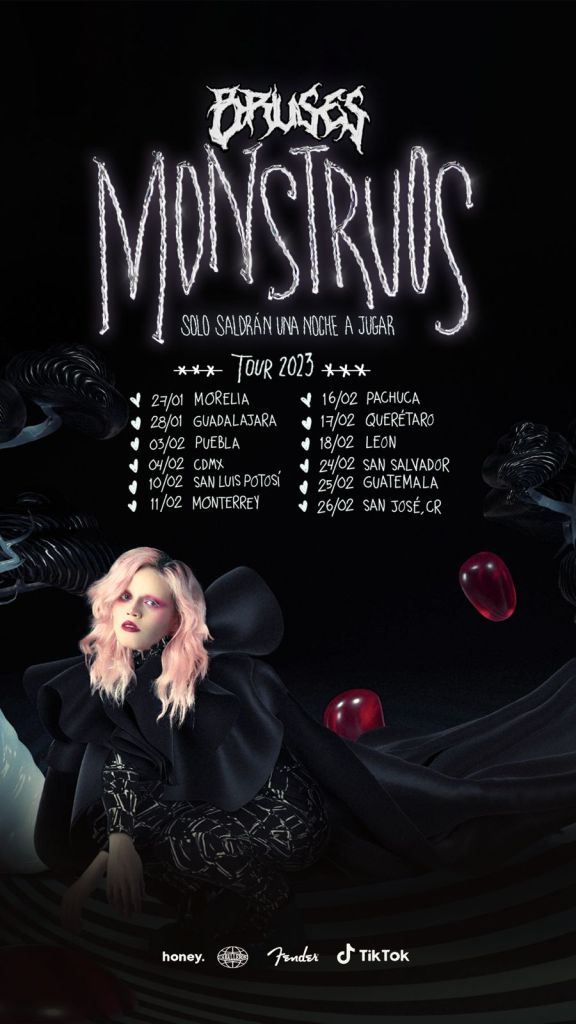Bruses, quien fue nominada a los Latin Grammy en 2022 y se ha convertido en una de las grandes apuestas del pop nacional, visitará Morelia, Guadalajara, Puebla, CDMX, San Luis Potosí, Monterrey, Pachuca, Querétaro, León, San Salvador, Guatemala y San José, Costa Rica, como parte de su gira 2023.