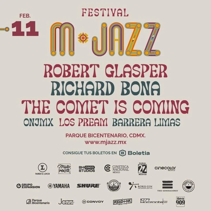 El broche de oro será el sábado 11 de febrero en el Parque Bicentenario. Subirán a escena Robert Glasper Electric Trio, The Comet is coming, Richard Bona Group, Orquesta Nacional de Jazz, Los Pream y el dueto Barrera-Limas. Así, con documentales fílmicos clave en la historia del jazz en México, la opinión de calificados especialistas y una gran tarde con el mejor jazz a nivel mundial, todos están invitados a disfrutar el Festival M Jazz.