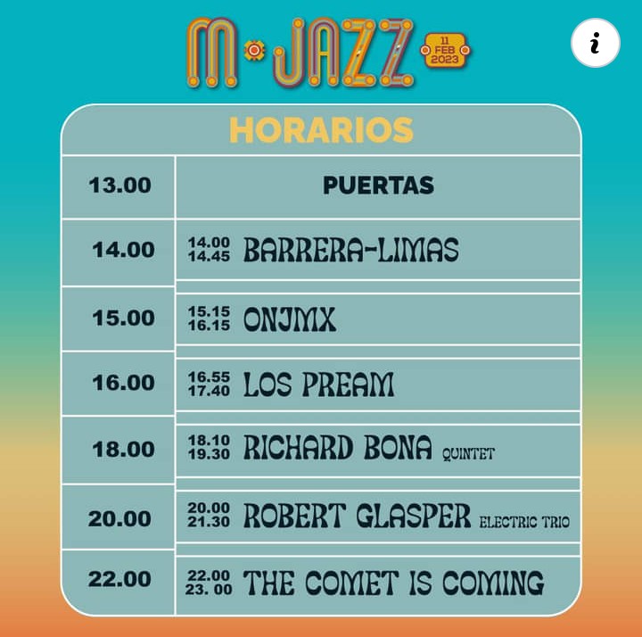 México debe ser una gran capital del jazz. Por ello, M Jazz Festival Internacional es un evento boutique de jazz contemporáneo con lo mejor del género a nivel nacional e internacional. Un día de música en vivo para toda la familia, con comodidades, arte y cultura como no ofrece ningún otro. Robert Glasper, Richard Bona, The Comet is Coming, la Orquesta Nacional de Jazz de México, Los Pream y el dueto Barrera – Limas, conforman la alineación imperdible para el próximo 11 de febrero en el Parque Bicentenario.