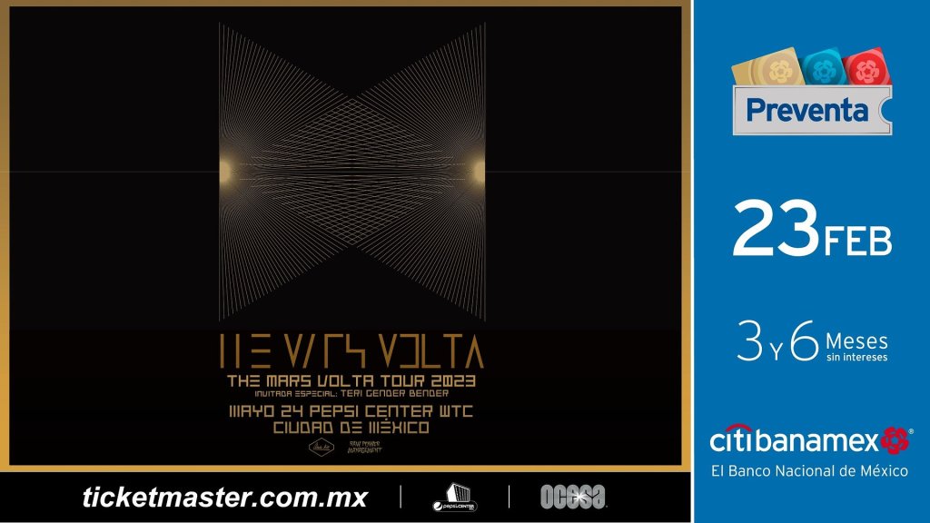 The Mars Volta regresa a suelo mexicano con nueva música y una gira que promete ser de las más aclamadas del año. No te pierdas de este concierto y adquiere tus boletos en preventa Citibanamex el 23 de febrero, y un día después los podrás adquirir en las taquillas del inmueble o a través de www.ticketmaster.com.mx.