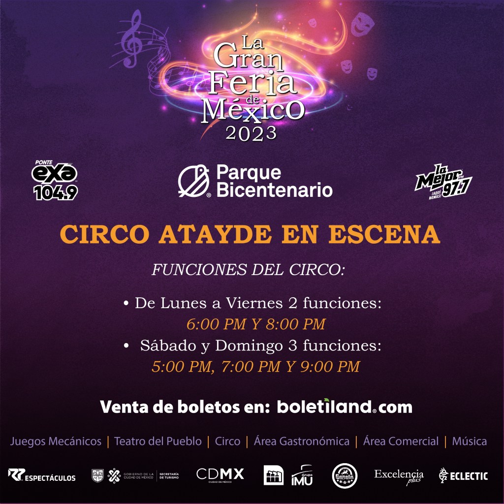 El inicio de La Gran Feria de México fue un éxito y ahora llega a su segunda semana de actividades. Además de poder disfrutar de más de 30 juegos mecánicos gratis, la magia del Circo Atayde, área gastronómica y un gran ambiente familiar, se podrá ver un gran cartel en el Teatro del Pueblo con las siguientes presentaciones: