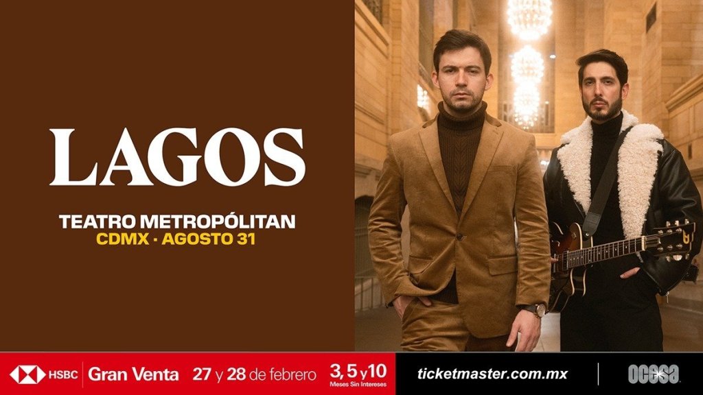 Este año, LAGOS está de regreso en la Ciudad de México para seguir conquistando los mejores escenarios. En esta ocasión, la cita será en el bellísimo escenario del Teatro Metropólitan el próximo 31 de agosto. Los boletos estarán disponibles en la Gran Venta HSBC el 27 y 28 de febrero, y un día después los podrás adquirir en las taquillas del inmueble o a través de www.ticketmaster.ocm.mx.