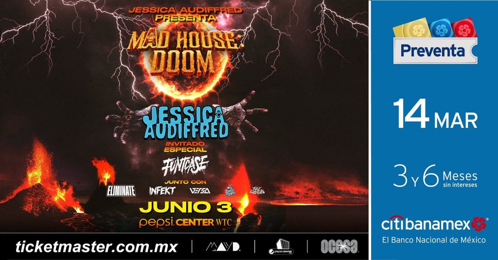 Jessica Audiffred, la productora y DJ mexicana hizo historia al crear el primer festival de Bass en México, marcando un hito en la escena electrónica latinoamericana. Gracias al éxito y al gran apoyo de los fans, este año regresa con su brutal concepto para reventar las bocinas del Pepsi Center WTC. MAD HOUSE: DOOM llegará el sábado 3 de junio con los mejores exponentes del género que harán volar la ciudad. Los boletos estarán disponibles este martes 14 de marzo en la Preventa Citibanamex por medio de la Red Ticketmaster. La venta general comenzará el miércoles 15 de marzo.