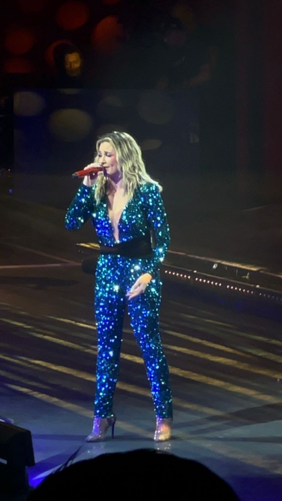 Con un cambio de vestuario la cantante reapareció en el escenario ahora con lentejuelas azules para interpretar “El amor manda”.