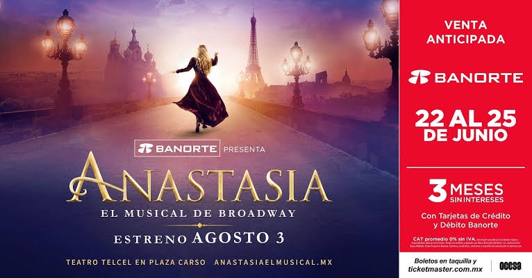 Anastasia: El Musical, llega a la CDMX después de varios años de espera, con una corta temporada del 3 de agosto al 29 de octubre en el Teatro Telcel.