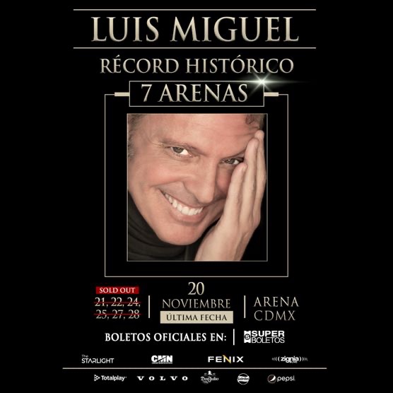 Luis Miguel, uno de los intérpretes más importantes y exitosos de todos los tiempos, anuncia su 7a y última fecha en la Ciudad de México: Arena CDMX 20 de Noviembre, 21:00 horas.