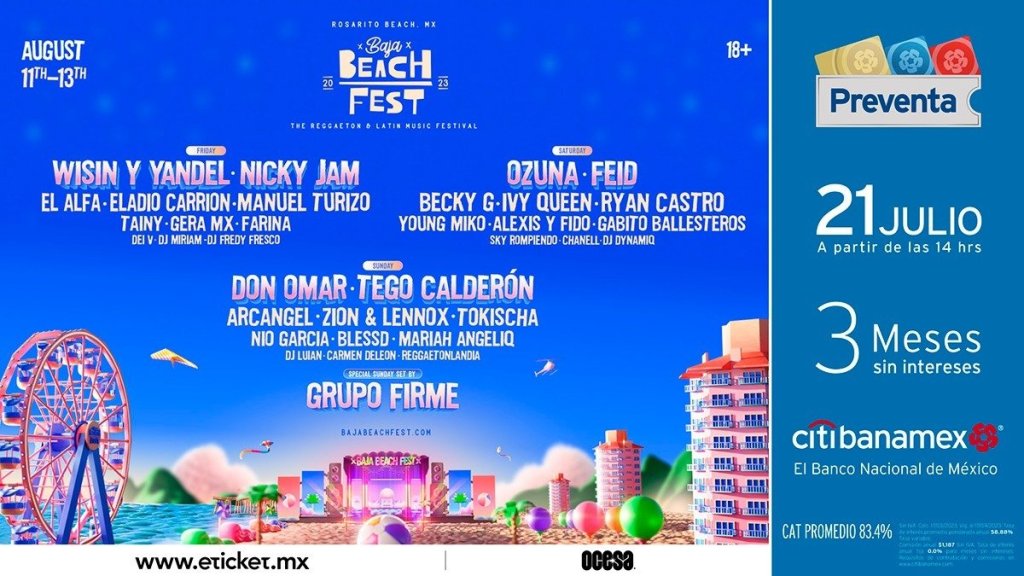 En esta ocasión, tenemos una preventa exclusiva para tarjetahabientes Citibanamex, donde podrán adquirir boletos por día con un precio especial. Así que no te pierdas de este gran evento que se ha convertido en uno de los mejores eventos de reggaetón en nuestro país. La Preventa Citibanamex se llevará a cabo el próximo 21 de julio, y un día después los podrás adquirir en la venta general a través de www.eticket.mx.
