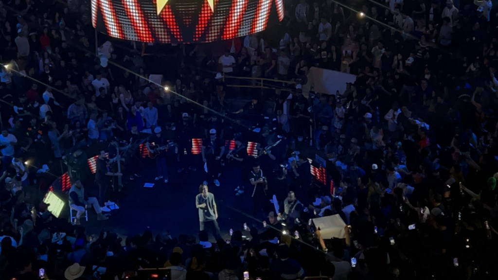 El recinto, que está en lleno total, recibió al originario de Hermosillo, quien a la media noche salió a escena con “Mi bello ángel” que hizo saltar de sus asientos a todos sus fans que se dieron cita esa noche.