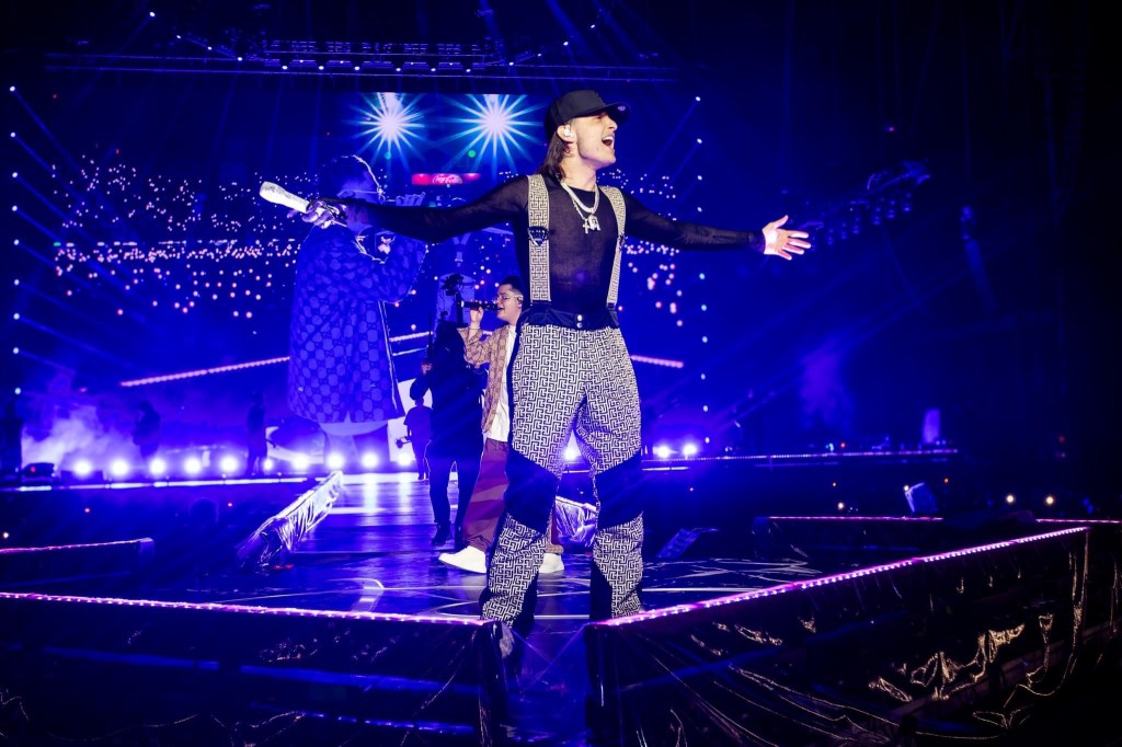 “¿Están listos para presenciar el concierto más bélico de sus vidas?, ¿quién quiere cantar corridos?” Preguntó el joven cantante ante más de 60 mil fans.